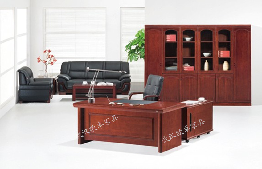 面材:美国进口“大西洋”牌AAA级0.6mm厚的优质胡桃木皮; 基材:合资厂生产一级绿色环保中密度纤维板,甲醛释放量0.35mg/100g,符合欧洲E1级标准; 封边:进口实木封边,含水率<12%; 油漆:德国“易涂宝”优质木器环保聚酯漆,保证良好的耐温性、耐磨性和抗划伤性; 皮垫:意 利进口“KENING”一级牛皮; 胶水:合资厂产优质环保胶水,符合GB18583标准; 五金件:德国“海福乐”或“BMB”及合资厂优质五金配件。